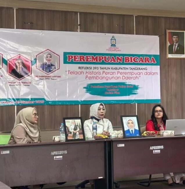 Terastagerang.com– Menjelang peringatan Hari Ulang Tahun ke-393 Kabupaten Tangerang, Lentera Perempuan menggelar kegiatan bertajuk “Perempuan Bicara: Telaah Historis Peran Perempuan dalam Pembangunan Daerah”, Kamis (9/10/2025) di Ruang Audio Visual, Perpustakaan Daerah Kabupaten Tangerang.